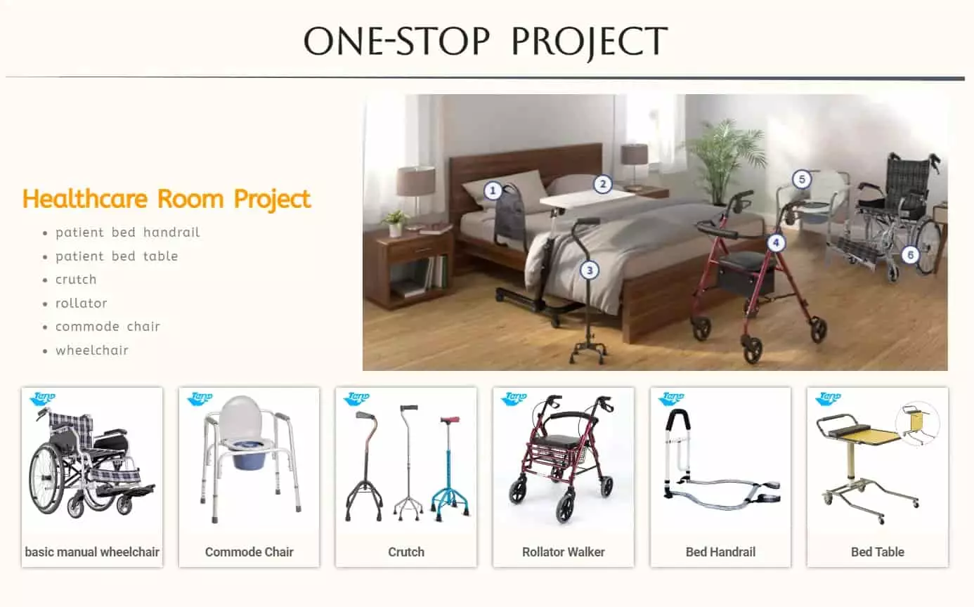 постачає продукти OEM & ODM, такі як нас Sчайник інвалідний візок, Алюмінієвий інвалідний візок, Пінвалідний візок,Wалкер, Cборозна, Ходунки, Cкрісло ommode, Крісло для душу,лікарняне ліжко, скутер, робот та інше медтехнічне реабілітаційне обладнання,
